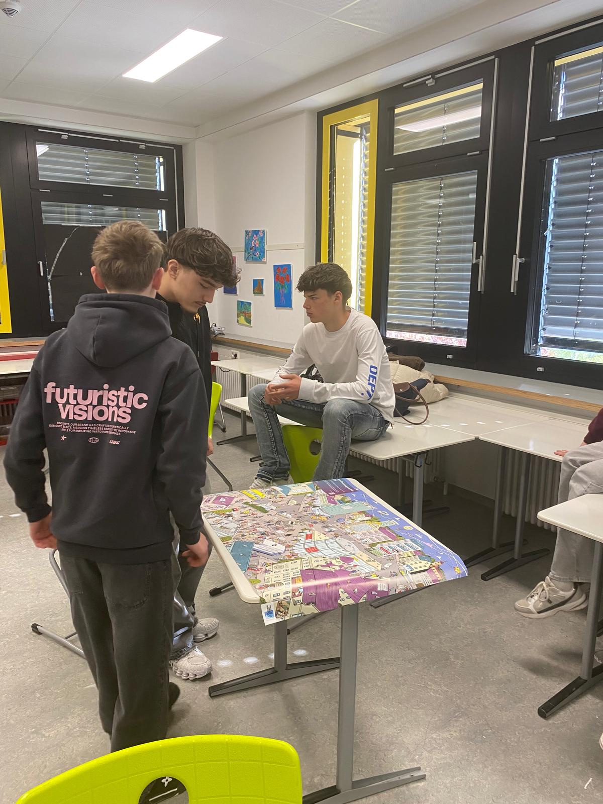 Ein besonders spannender Teil des Besuchs war die aktive Mitarbeit der Klasse. Anhand eines großen Plakats durften die Schülerinnen und Schüler selbst verschiedene Verschwörungstheorien auswählen und gemeinsam darüber sprechen.