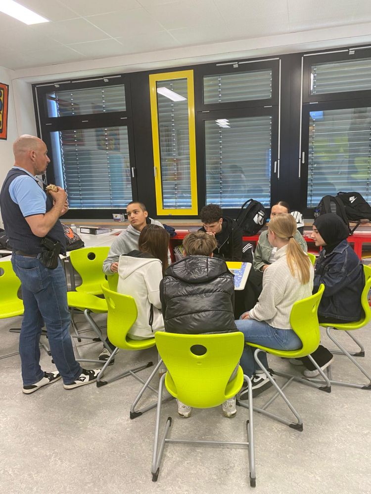 Am 17. April hatte die Klasse 9c unserer Realschule einen besonderen Besuch: Gemeinsam mit ihrer Klassenlehrerin Frau Gärtner empfingen die Schülerinnen und Schüler Herrn Reich, Polizeihauptkommissar aus Mannheim, der über das Thema Verschwörungstheorien referierte.