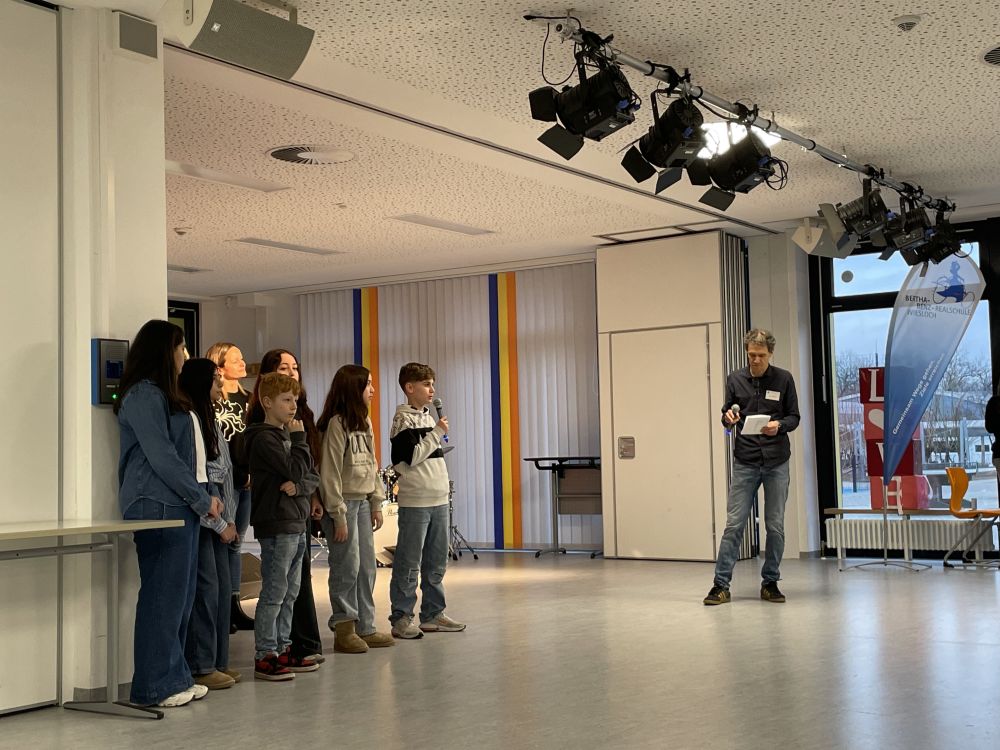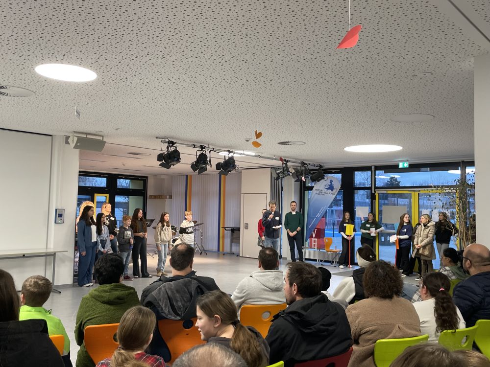 Zu Beginn hieß die Schulleitung die Gäste herzlich willkommen. In kurzen Impulsen stellten der Schulleiter Andreas Herbold, seine Stellvertreter:innen Kathrin Kienle und Tobias Ronellenfitsch als auch Schüler:innen der 5a – Moritz, Taulant, Mina, Nazli, Sinat, Sofia – sowie Lehrkräfte die Werte der Schule vor: eine sichere, motivierende und inklusive Lernumgebung, in der individuelle Stärken gefördert werden. Die Begrüßung hob hervor, wie wichtig die Zusammenarbeit mit Eltern und regionalen Partner:innen für die Schullaufbahn der jungen Menschen ist.