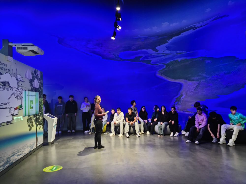 Schon auf der Hinfahrt waren alle gespannt, was uns dort erwarten würde. Die Klima Arena ist ein modernes Mitmach-Museum, das sich mit den Themen Klimawandel, Umwelt und Nachhaltigkeit beschäftigt. Als wir ankamen, wurden wir freundlich von einer Mitarbeiterin begrüßt, die uns kurz erklärte, wie der Tag ablaufen würde. Danach durften wir in kleinen Gruppen die Ausstellung erkunden. Besonders beeindruckend war die interaktive Ausstellung, in der man an vielen Stationen selbst ausprobieren konnte, wie unser Klima funktioniert und wie der Mensch es beeinflusst. Nach einer kurzen Pause im Café der Klima Arena kam das Highlight – das Gletscherkino, wo uns gezeigt wurde, wie die Welt im Jahr 2100 aussehen könnte (mit vielen Hochhäusern, Naturkatastrophen und wenig Natur). Der Film vermittelt nicht nur Fakten, sondern greift auf Mitmachstationen, Hörführungen und ein Quiz zurück. Am späten Vormittag trafen wir uns wieder im Eingangsbereich, wo wir über das Erlebte sprachen. Viele von uns waren überrascht, wie stark unser tägliches Verhalten das Klima beeinflusst. Trotzdem fanden wir es gut, dass die Klima Arena nicht nur Probleme zeigte, sondern auch Lösungen und Ideen für eine bessere Zukunft präsentierte. Gegen 13 Uhr machten wir uns auf den Rückweg in die Schule, wo wir uns noch lange über das, was wir gelernt hatten, unterhielten.