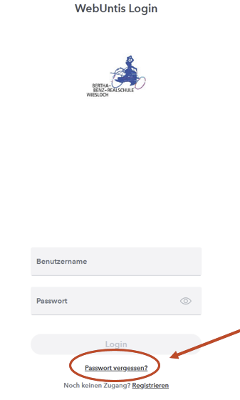 Rufen Sie die Seite https://asopo.webuntis.com/WebUntis/?school=BBRS+Wiesloch#/basic/login auf und klicken auf ‚Passwort vergessen?‘.